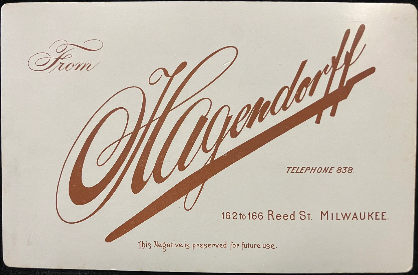On back: From Hagendorff Telephone 838. 182 to 188 Reed St. Milwaukee. This negative is preserved for future use.