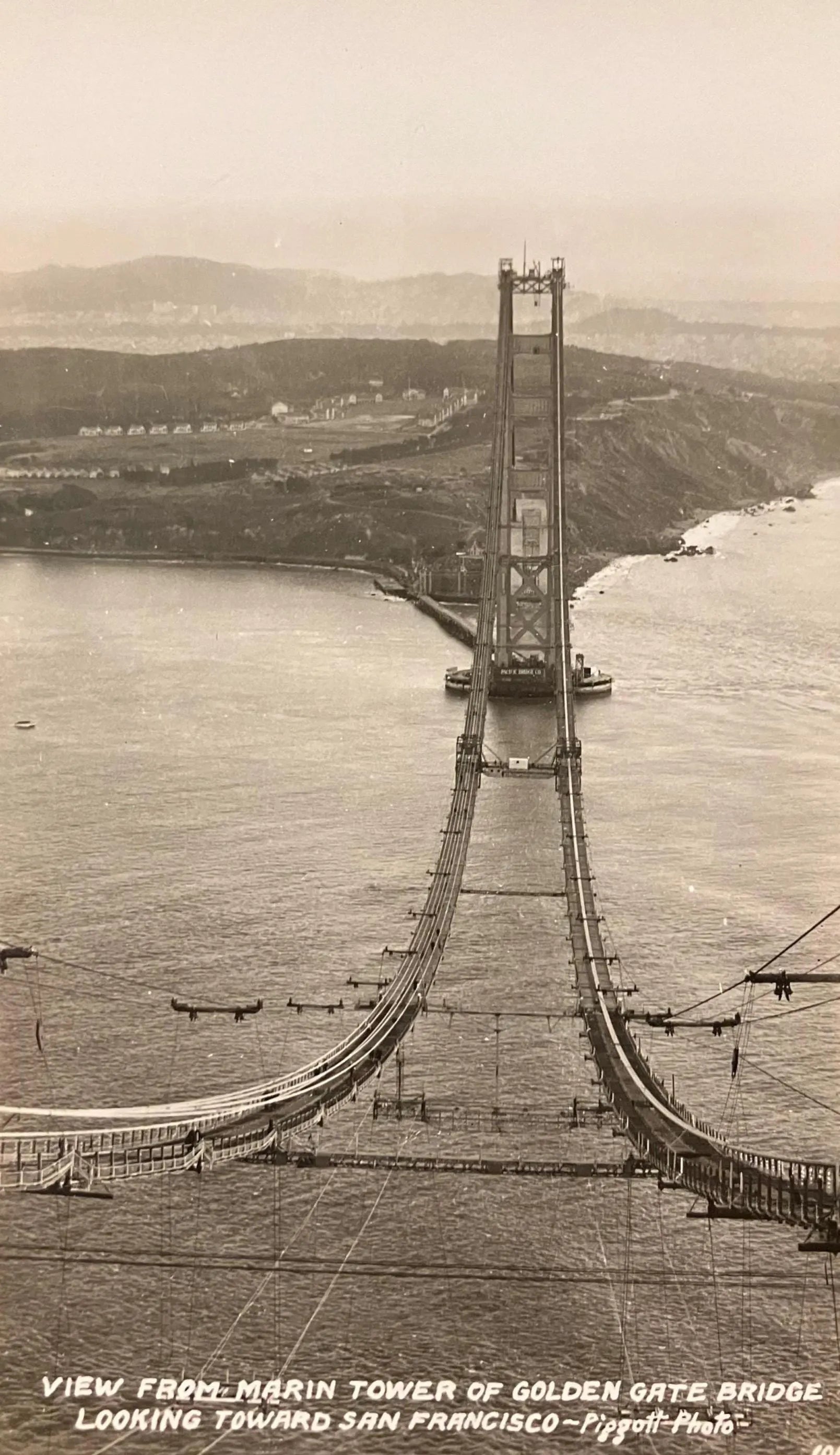 View from Marin Tower of Golden Gate Bridge Looking Toward San Francisco - “Piggott Photo” - Vintage RPPC Postcard