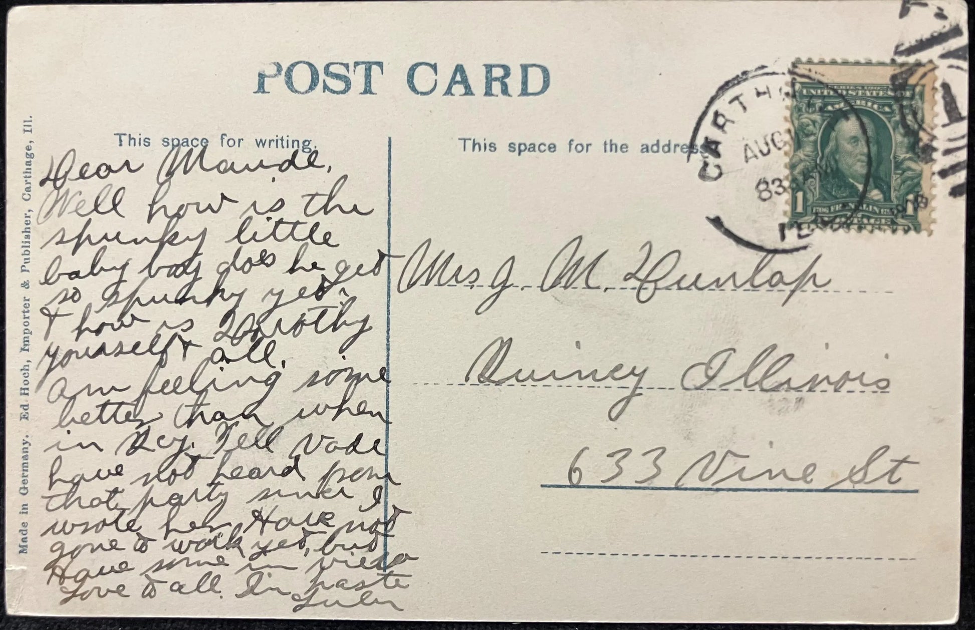Mailed: Postmark: Green one cent Benjamin Franklin stamp