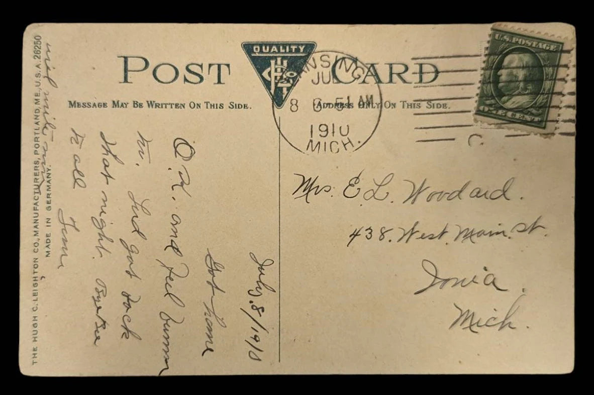 Mailed on July 8, 1910 with green one-cent Benjamin Franklin stamp