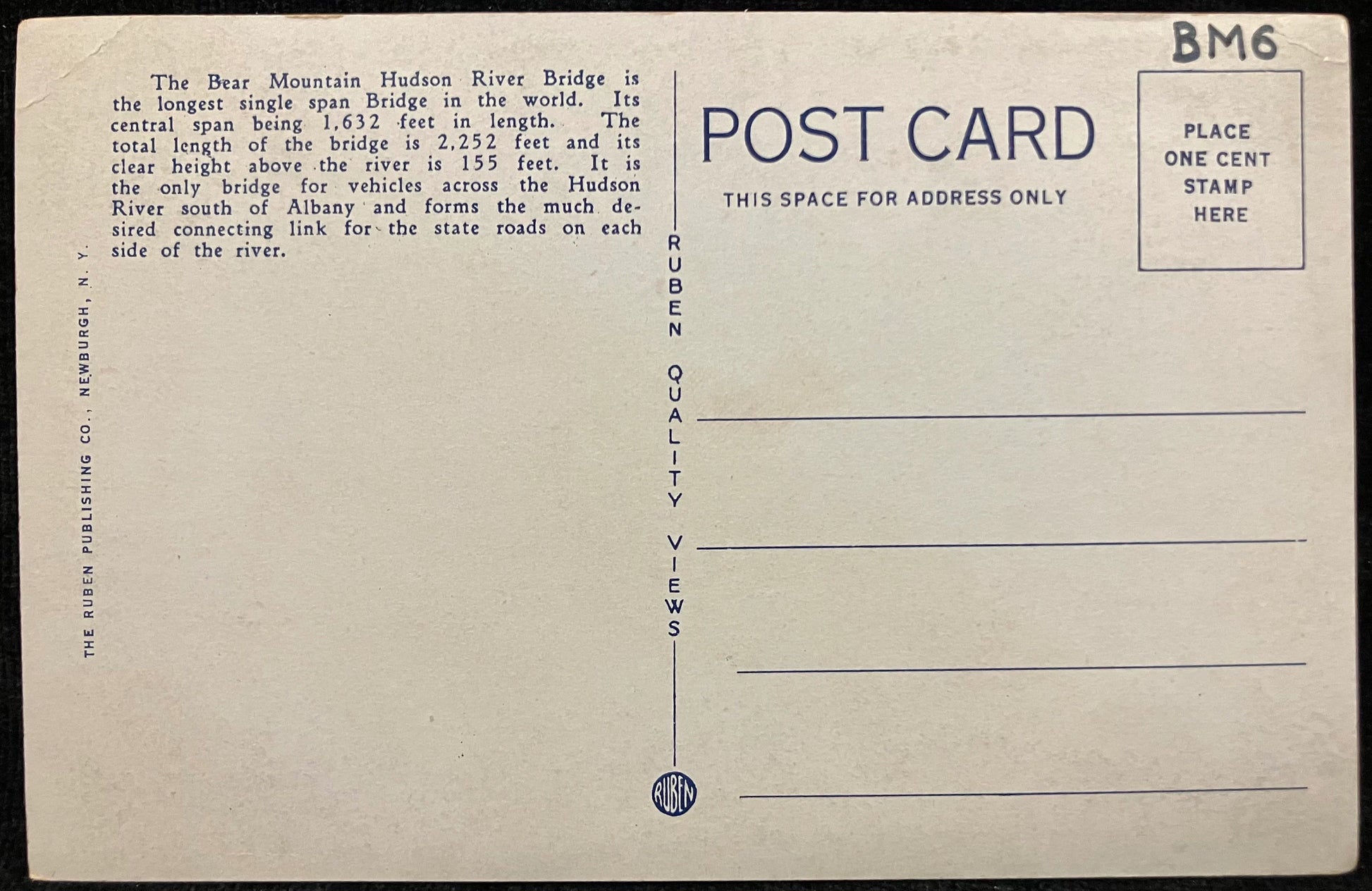 On front: West Approach to the Bear Mountain, Hudson River Bridge, N. Y. Showing the Toll Gate