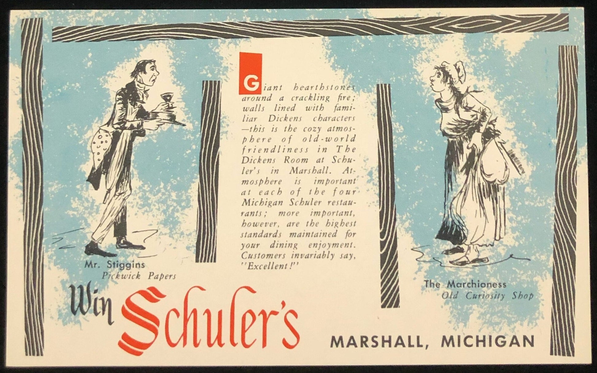 Win Schuler's Marshall, Michigan Collectable Advertising - Vintage Postcard