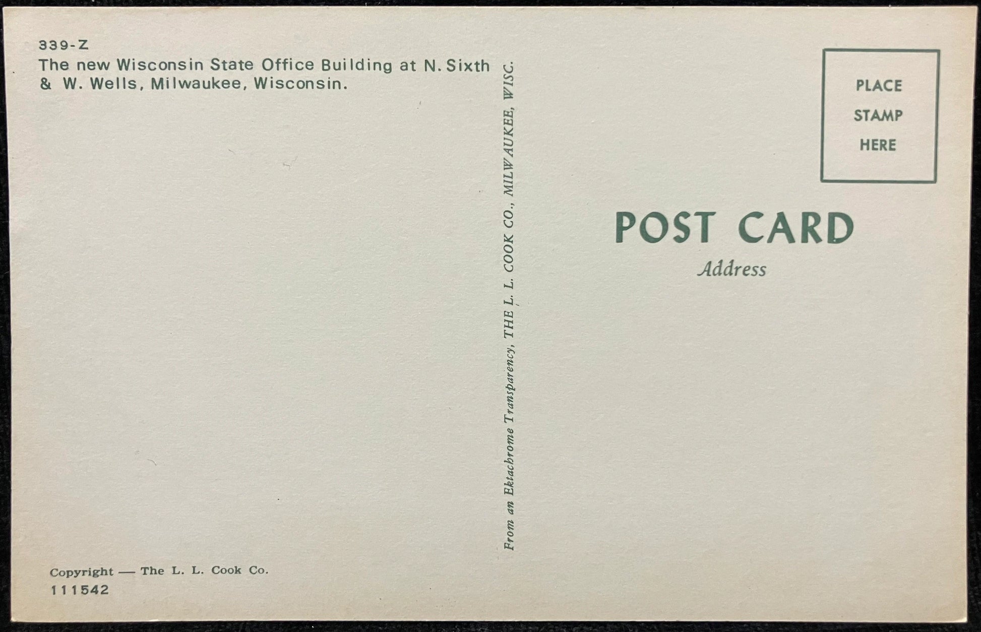 Wisconsin State Office Building in Milwaukee, Wisconsin - Vintage Postcard