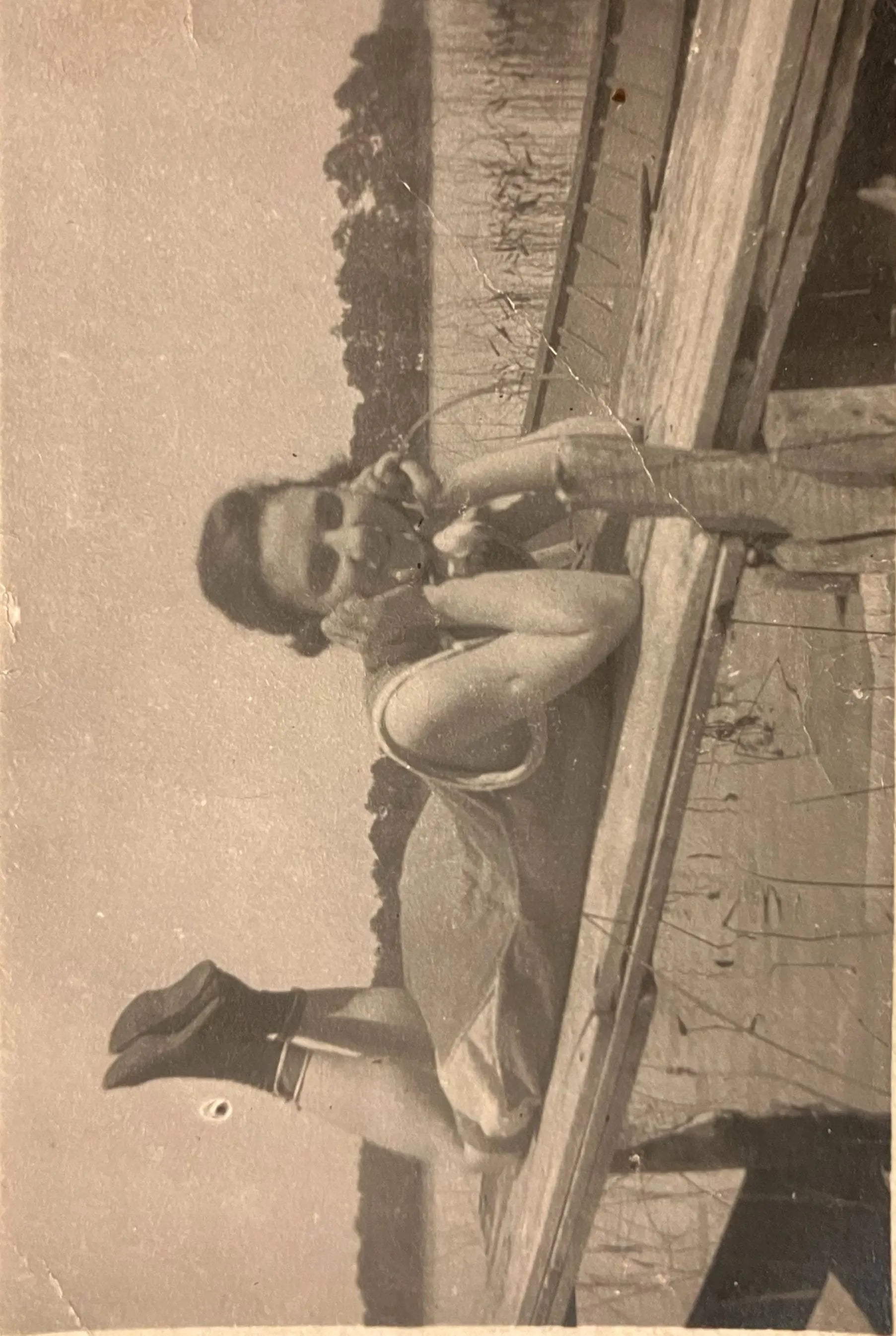 On front: 1907 teenager in bathing suit at a cottage on an inland Lake in Michigan